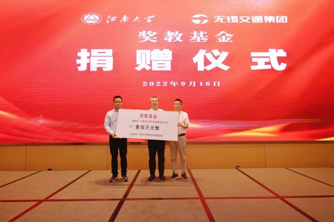 无锡市交通集团党委副书记、副总裁(主持经理层工作)许青凯向江南大学商学院院长浦徐进递交捐赠支票,江南大学社会资源处处长黄敏向许青凯颁发捐赠证书。江南大学无锡交通集团奖教基金的设立,将积极支持江南大学商学院学科建设、人才培养、师资队伍建设等,同时也将鼓励无锡交通集团广大员工自主学习、自觉深造,更好地服务无锡经济社会发展大局。