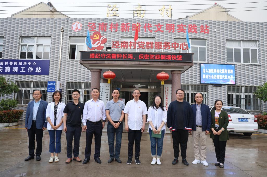 随后,中心组一行来到江阴长泾镇,参观走访了由北美学院2017届校友吴海成创办的江阴市新昕达纺织品有限公司,并与长泾镇副镇长张琳、泾南村村委会班子一道围绕“高校在乡村振兴中的作用发挥”开展了深入交流探讨,当地政府对吴海成校友开拓创业、造福乡梓的新时代青年力量给予了高度评价,也希望高校继续为乡村振兴提供人才支撑。