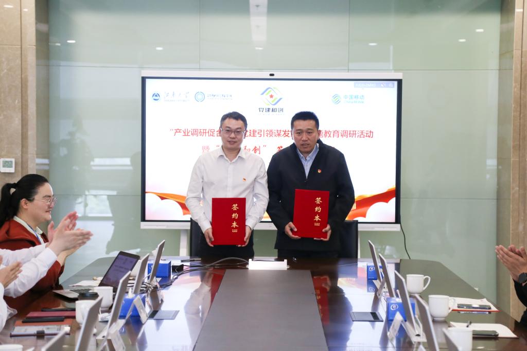 5月26日上午,江南大学物联网工程学院党委副书记孔丽丹、办公室党支部书记安君及办公室党支部全体党员前往中国移动无锡公司开展“产业调研促合作,党建引领谋发展”主题教育专项调研。中国移动无锡公司滨湖营销中心党支部书记、经理刘炜,滨湖营销中心副经理丁玉驰,集客部经理周加龙及滨湖营销中心党支部党员代表出席调研交流会。