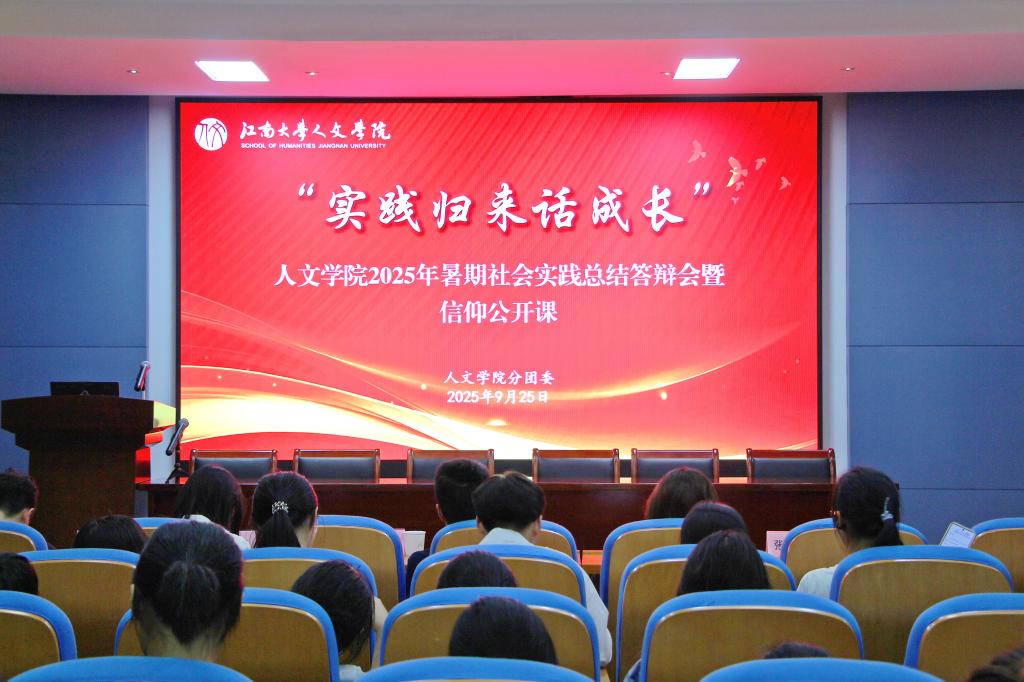 为总结暑期实践育人成果,引领更多人文学子投身社会实践的广阔天地,9月25日晚,人文学院在田家炳楼209会议室举行2025年暑期社会实践总结答辩会暨“实践归来话成长”信仰公开课。学院分团委书记邓昌海,辅导员姜正一、刘畅、肖雨荷,兼职辅导员、校青年志愿者协会主席张佳慧,江南大学研究生支教团成员张宇帆和16支实践团负责人以及130余位2025级本科新生共同参加了本次活动。