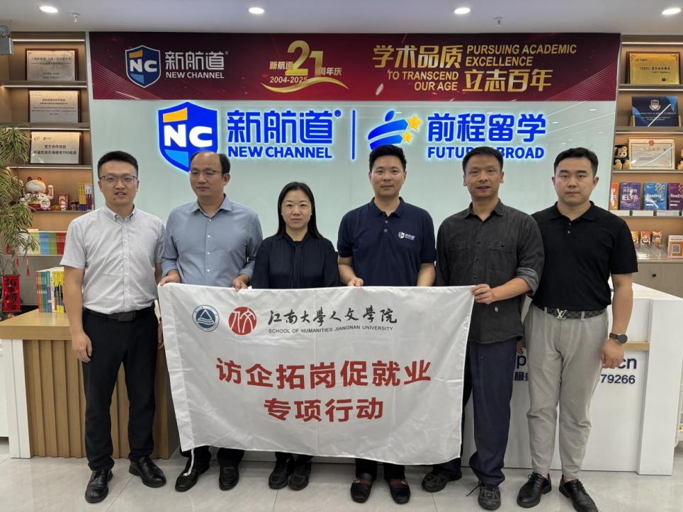 人文学院一行还走访了新航道江阴学校,双方围绕行业发展现状、人才培养方向、科研合作及就业岗位拓展等议题进行了深入探讨,共同谋划校企协同发展的新路径,探索建立稳定有效的合作机制,为学生开拓更多实习实践和就业机会。