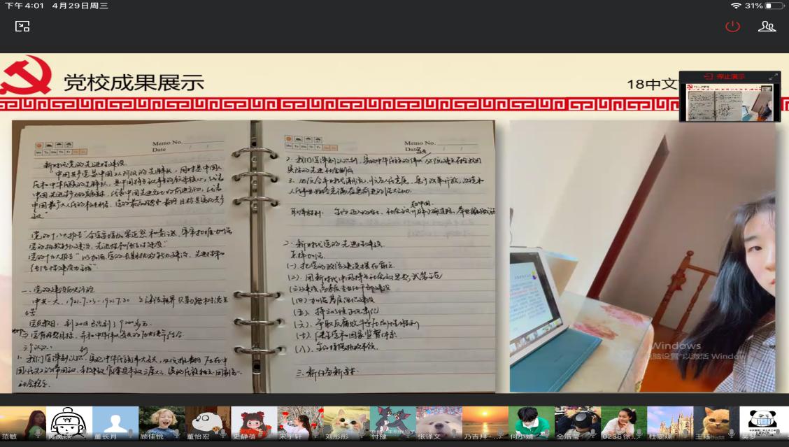 2020年4月29日下午,由人文学院分党校主办的第39期学生发展对象培训班学习汇报暨结班仪式准时在线上开展。来自人文学院、理学院和商学院共十个小组参与了汇报。在为期一个月的党校学习中,学员们完成了在线学习、主题讨论、辅导讲座、道德讲堂、主题实践等学习环节,通过学习汇报大家展示和分享了学习感悟与成果。