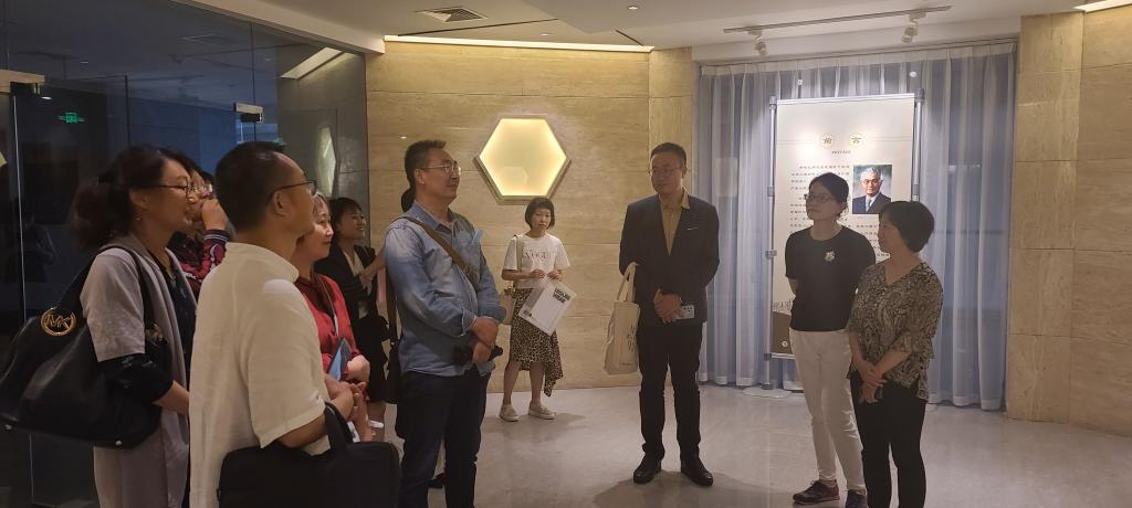 活动第二项,支部全体成员参观了位于图书馆四楼的珍藏阅览室和荣毅仁纪念馆。珍藏阅览室目前收藏了古籍、民国文献、现代影印的古籍以及1912年前出版的外文原版书等中外文书刊2.68万种,3万余册。馆藏古籍包括经、史、子、集、丛各个门类,涵盖雕版(刻本)、钞本(抄本)、套印本、活字本、石印本、铅印本(排印本)、影印本、刷印本等类型,其中明刻本等善本300余册。党员同志们不时驻足停留,相互讨论。随后,在荣毅仁纪念馆,党员们从一张张图片和一本本记录册中了解了穿越厚重历史岁月的荣氏故居、大公图书馆、荣毅仁北京旧居等,感受到了荣氏家族“筚路蓝缕以启山林”的开拓史,艰苦卓越的创业守业奋斗史。党员同志们深深为荣毅仁“发上等愿,结中等缘,享下等福;择高处立,就平处坐,向宽处行”的人生态度所折服,所敬佩。纷纷表示,作为荣毅仁同志的家乡人,要以他为榜样,永葆爱国爱乡情怀,提升奉献精神,学习严谨务实的工作作风,立德树人,不忘初心。
