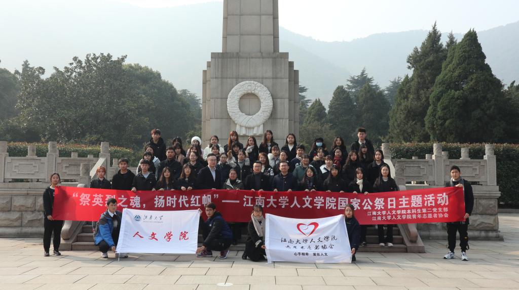 为了悼念南京大屠杀死难者和所有在日本帝国主义侵华战争期间惨遭日本侵略者杀戮的死难者,牢记侵略战争带来的深重灾难,激发青年学子“牢记历史 振兴中华”的爱国情怀,12月13日上午,由人文学院青年志愿者协会组织,人文学院本科生第二党支部共同参与的国家公祭日“祭同胞英烈,扬时代红帆”主题教育活动在无锡市革命烈士陵园开展。活动由人文学院中文系青年党员教师韩宇瑄主持,人文学院分团委书记黄凤琼和60名人文学院学生党员、积极分子共同参加了本次活动。马克思主义学院教师巩建青,人文学院辅导员、本科生第二党支部书记邓昌海为同学们共同讲授了一次现场党课。