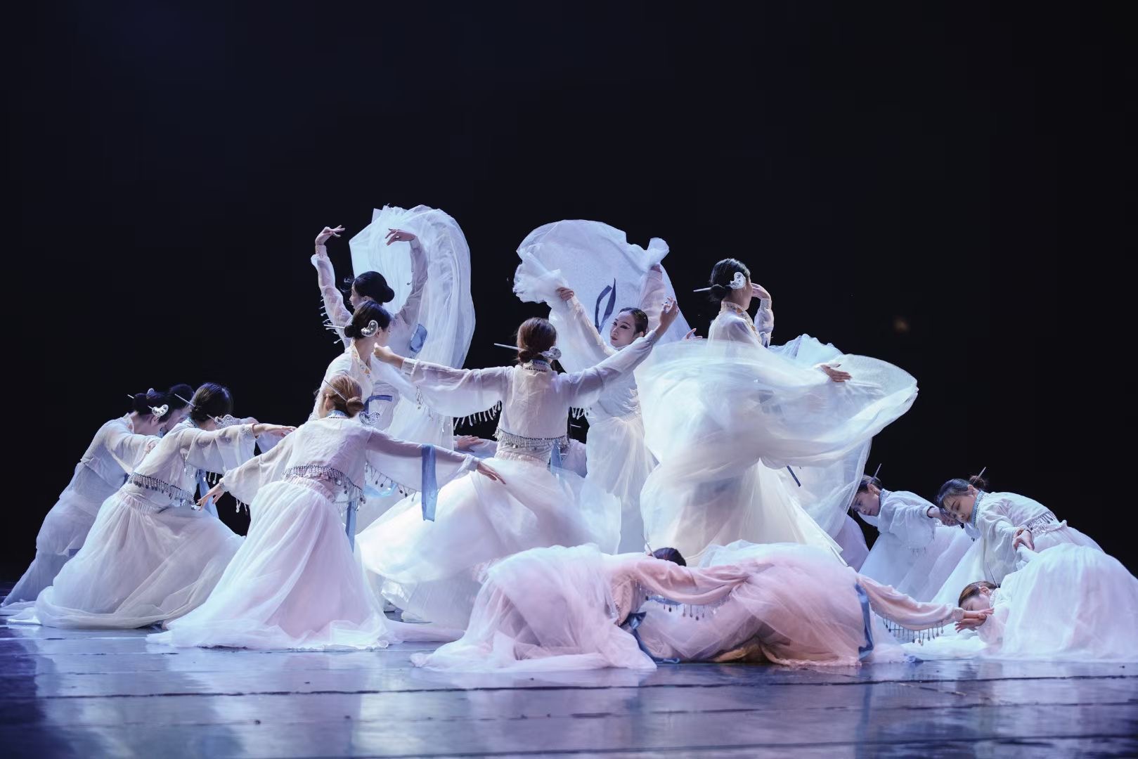 《青春摇摆》运用激情的旋律、青春的面孔,在摇摆的节奏中带起城市的节拍,象征着校园的符号;原创作品《一荤一素》以一张老照片勾联“我”与父母的诸多回忆,意在展现亲情可贵,树欲静而风不止,子欲养而亲不待,子女更应感念哺育之恩,作品用舞蹈展现人性温情;浮甘瓜于清泉,沉朱李于寒水。水是万物之源,不断汩动的泉水更是活跃了整片生灵。人们从水中攫取,攫取力量,也攫取希望。作品《泉》以朝鲜女子群舞的形式展现对于水的特殊情感,柔婉温情之外,亦存刚健之气;《我的祖国》刻画出一座座爱国将士为国捐躯的丰碑,先辈们“背着因袭的重担,肩住了黑暗的闸门”,方存我们今日之光明幸福,同学们用沉毅稳健的舞姿赞颂牺牲先烈们的凌然大义;怀念与铭记之后,《枝桠》紧跟时代浪潮,表现了疫情来临之际,中华儿女所表现出的顽强斗争精神,正如同树枝最末梢的枝桠一般,生生不息。最后,作品《远方》寄予了学子们对远方的向往,对探求梦想的渴望。