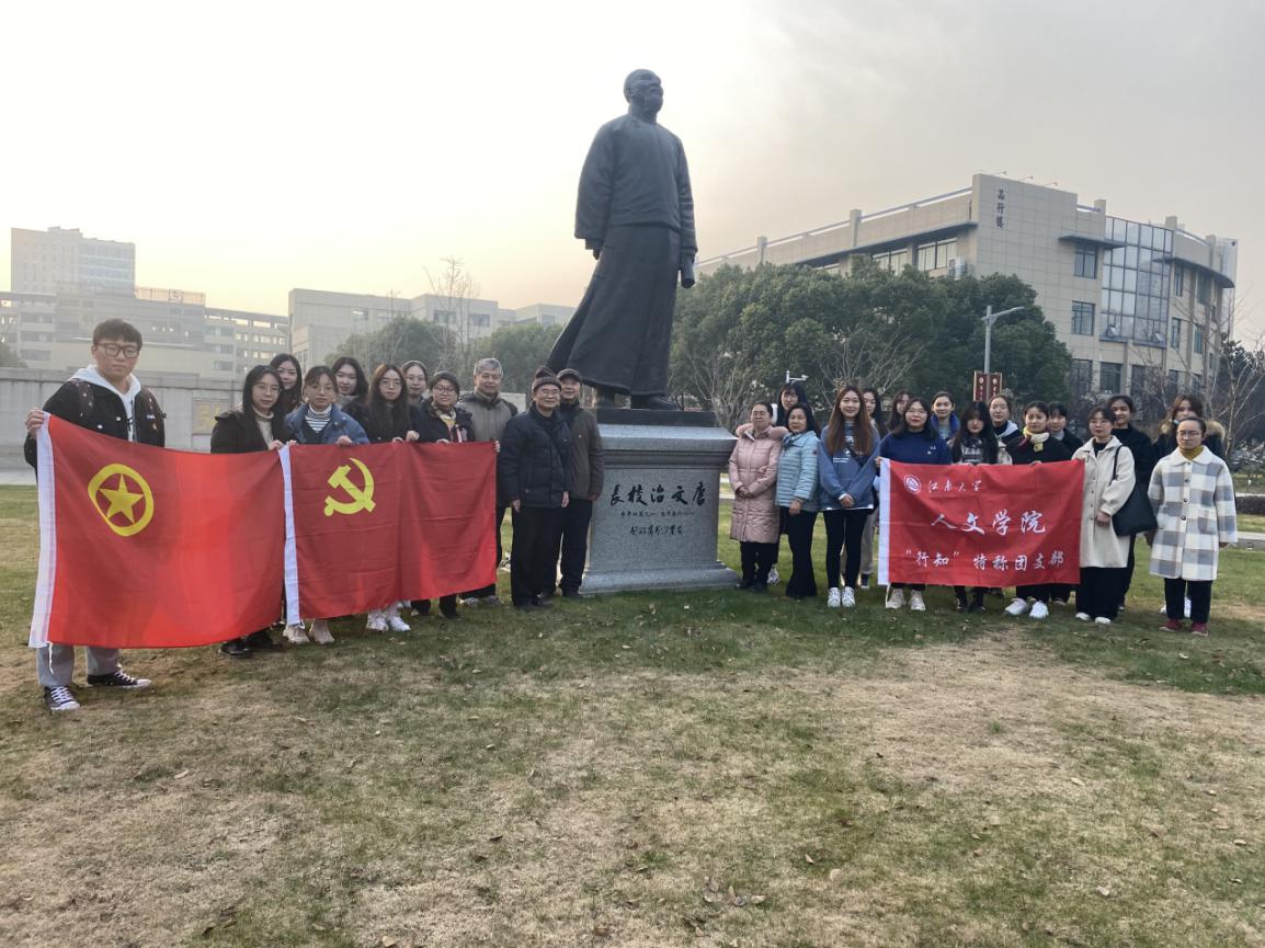 为纪念无锡国专创立100周年,学习与弘扬唐文治先生的教育精神,2020年12月24日下午,人文学院分团委组织开展“老少携手、党团共建”活动,小教1802“行知”特称团支部全体团员与结对的江南大学曹张片区退休第二党支部老党员们共赴无锡市第三高级中学参观学习。曹张片区退休第二党支部书记蒋炳华老师、支委陈仲康老师、邓慧慧老师和人文学院关工委秘书、分团委书记黄凤琼老师共同参加活动。