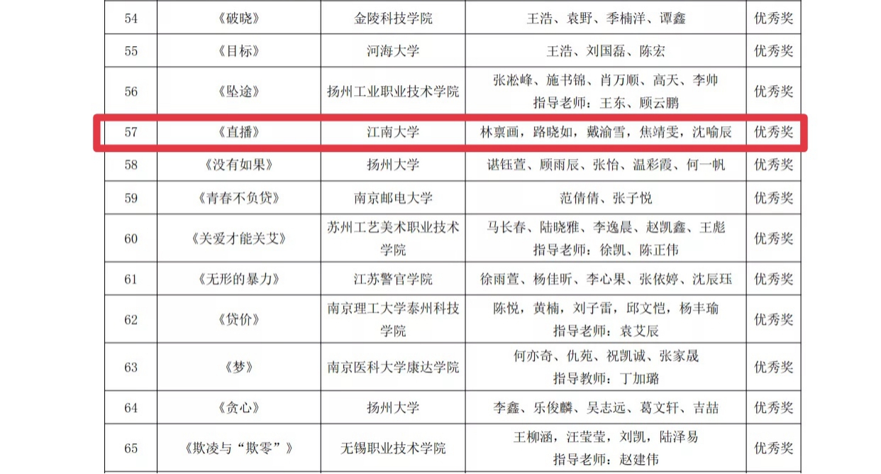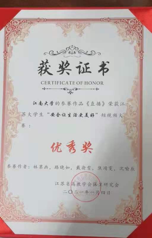 日前,由江苏省高教学会保卫研究会主办的江苏省大学生“安全让生活更美好”短视频大赛落下帷幕,人文学院学子路晓如、沈喻辰、戴渝雪、林禀画、焦靖雯五位同学所报送作品《直播》荣获优秀奖。