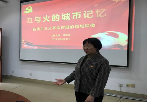 最后,姚剑英讲授《血与火的城市记忆——新民主主义革命时期的锡城映像》主题党课。她通过呈现锡城在五四运动、中国共产党成立、五卅运动、全国农民运动等中国共产党重要历史节点的历史活动,使全体党支部干部更加了解脚下所生活的土地曾经历过的磨难,从而坚定信念、凝聚力量、砥砺品格,启迪各党支部书记提高思想认识和政治站位,高标准高质量完成学习教育各项任务。