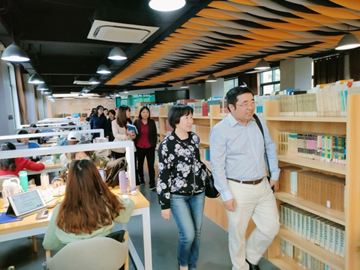 学习交流座谈之外,王健校友、朱纯洁校友还陪同人文学院一行参观了上师大教育学院学习中心和实训中心。