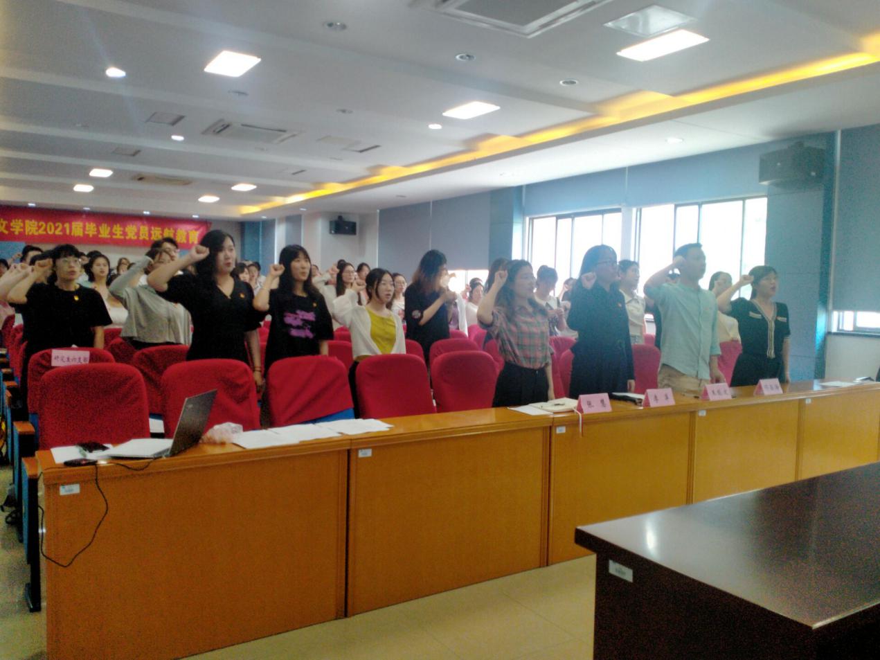 随后,在毕业生党员代表张朝旭、侯文雯的领学下,全体毕业生党员认真学习并签署了《毕业生党员须知》《文明离校承诺书》。接着,赵丽敏就毕业生党员组织关系转接的具体事宜做了专题讲解。最后,李萍为毕业生上了最后一次党课。先是观看了由学院党委组织拍摄的党课专题片《徐暐先生》,李萍分别从入党初心、乐学向善、感恩母校三个方面为大家上了一堂生动的党课,并寄语党员们:希望毕业生党员们走上工作岗位后,继续以党员的标准严格要求自己,能够时刻谨记习近平总书记对青年人的希望“立大志、明大德、成大才、担大任,”努力成为堪当民族复兴重任的时代新人,让青春在为祖国、为民族、为人民、为人类的不懈奋斗中绽放绚丽之花。