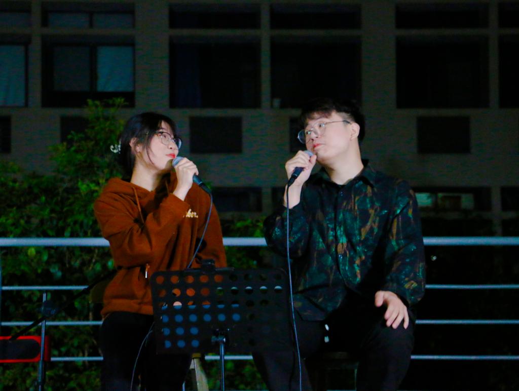 音乐会伊始,吴听旭、刘安琪、徐子寒同学带来暖场舞《踏春》,青丝墨染,水袖飘逸,婀娜的舞姿瞬间点燃全场氛围。演出的第一个部分为“星星之火”,由四个节目组成。祝三卿同学给观众带来钢琴弹唱《我们》,把思念化作祝福,表达了珍惜现在所拥有的一切的美好祝愿;仰莞尔同学深情演唱《这世界那么多人》,用歌声唱出这世界那么多人,有你一个就足够的真挚情感;刘宁、朱奕驰、康振鹏同学合作演出《爱爱爱》,轻快的曲调,丝丝入扣的感情,是一腔沉淀的深情;乔益铭同学倾情演唱《七里香》,让人回想起年少时羞涩而又甜蜜的爱情。