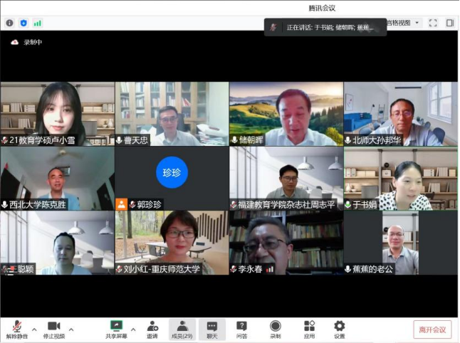 最后,储朝晖对会议进行了总结,他对本次会议的成果与成效给予了高度认可,并希望各位老师可以就会议过程中提出的新问题进一步展开探索与研究。为了便于讨论与交流,会议还建立了专门的微信交流群,以便大家随时沟通与写作。于书娟也特别谈到,通过此次会议,发现了许多教育社团中的无锡教育印记,并诚挚地向各位与会学者发出了邀请。会后,所有与会成员进行了线上合影留念。