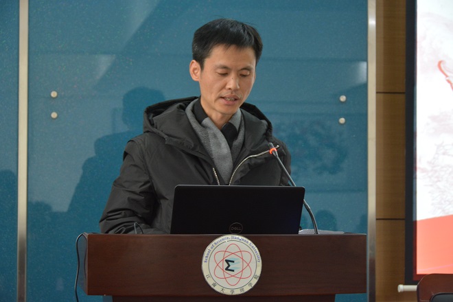 校机关离退休第一支部书记蒋仲华发言。他自谦有幸在迟暮之年可以为理学院的党团共建活动做出一点贡献,希望大家谨记习近平总书记在党的十九大上对青年提出的期望,牢记总书记“青年兴则国家兴,青年强则国家强”的谆谆教导。