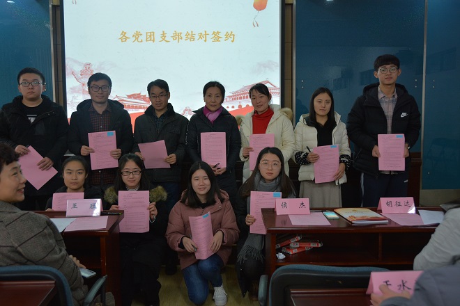 1月9日下午,理学院在钱伟长楼202会议室举行2019年党团共建签约仪式暨理学院雷锋、华罗庚特称团支书交接仪式。校机关离退休第一党支部书记蒋仲华、支委袁伯兴、过敏敏、理学院党委书记王珏、院党委副书记副院长陈周、各教工各党支部书记、院分团委书记王健、分团委副书记张志新、2017、2018级研究生各党支部书记以及全体本科生团支部干部参加会议。仪式由院学生联合会主席俞晨阳主持。