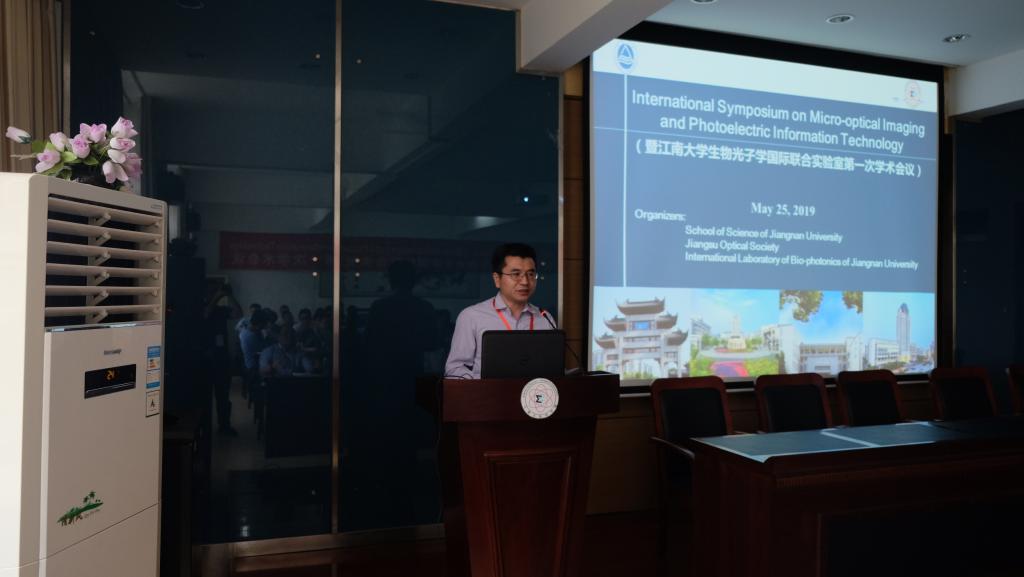 5月25日,2019International Symposium on Micro-optical Imaging and Photoelectric Information Technology暨江南大学生物光子学国际联合实验室第一次学术会议在江南大学理学院钱伟长楼202室举行。会议特邀专家白俄罗斯戈梅利国立大学校长S.Khakhomov教授、副校长I.Semchenko教授、白俄罗斯科学院院士A.V. Rogachev教授、中-白孔子学院院长L. Wang教授、戈梅利国立大学A.Balmakou教授、南京大学T.Xu教授、苏州大学X. Li教授、苏州师范大学C. Han教授、中科院上海技术物理所J. Zhou教授、南京理工大学L. Li教授、西湖大学Z.Zhang教授以及上海交通大学W. Wan等来自6个不同国家的光学专家以及光电系教师和研究生参加了本次会议。会议由理学院副院长刘诚教授主持,理学院院长及生物光子学国际联合实验室主任陈国庆教授和科研院副院长刘晓宏教授分别代表学校和学院致欢迎和开幕词。