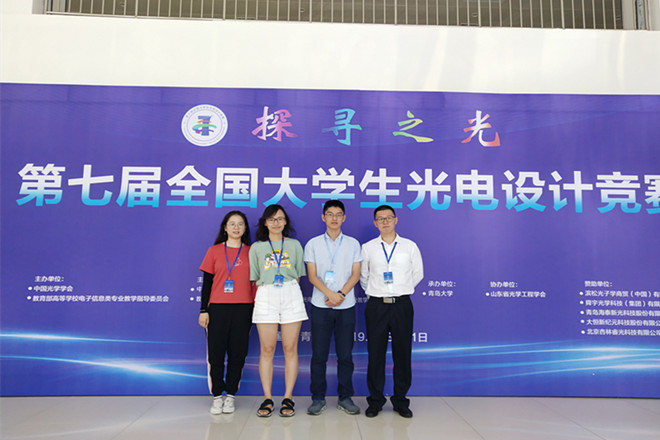 8月18-21日,第七届全国大学生光电设计竞赛在青岛大学举行。本次大赛由中国光学学会、教育部高等学校电子信息类专业教学指导委员会主办,青岛大学承办,山东省光学工程学会协办。大赛吸引了包括浙江大学、南京大学、中国石油大学、北京理工大学、华中科技大学、江南大学等全国各地178所高校1448支队伍参赛。江南大学理学院由曹建军老师指导,王千实、龙思琪和唐阳三位同学组成的参赛队伍成功通过东部赛区的选拔进入国赛,最终在197支决赛队伍中脱颖而出,获得全国二等奖。