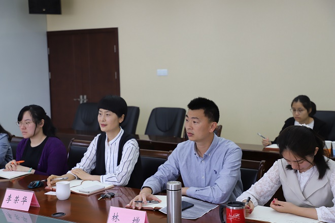 2019年5月16日上午,常州大学商学院党委副书记龙涌澜、学工办主任刘峰、团委书记张燕一行来我校商学院交流学习。院党委副书记、副院长李荣华,分团委书记兼学工办主任林增及学工组各辅导员参加座谈交流。