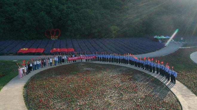 5月29日下午,江南大学商学院管理学科教工第一党支部、无锡税务第一稽查局、江南大学财务处三个党支部的党员齐聚无锡滨湖雪浪山,联合开展“爱党爱国爱家乡 携手奋斗新时代”主题党日活动。在薰衣草盛开的紫色海洋里,七十余位党员用一场洋溢着激情和骄傲的快闪演绎了三首经典老歌《没有共产党就没有新中国》、《我和我的祖国》和《太湖美》,共同献礼建党98周年以及新中国70周年华诞,为党、为祖国、为家乡献上最真切的祝福。