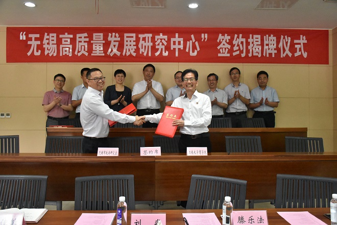 “无锡高质量发展研究中心”,是为认真贯彻无锡市人民政府与江南大学“十三五”合作共建框架协议精神,进一步推动具体合作项目落地落实,经无锡市政府研究室和江南大学商学院商定,双方合作共建的研究平台。