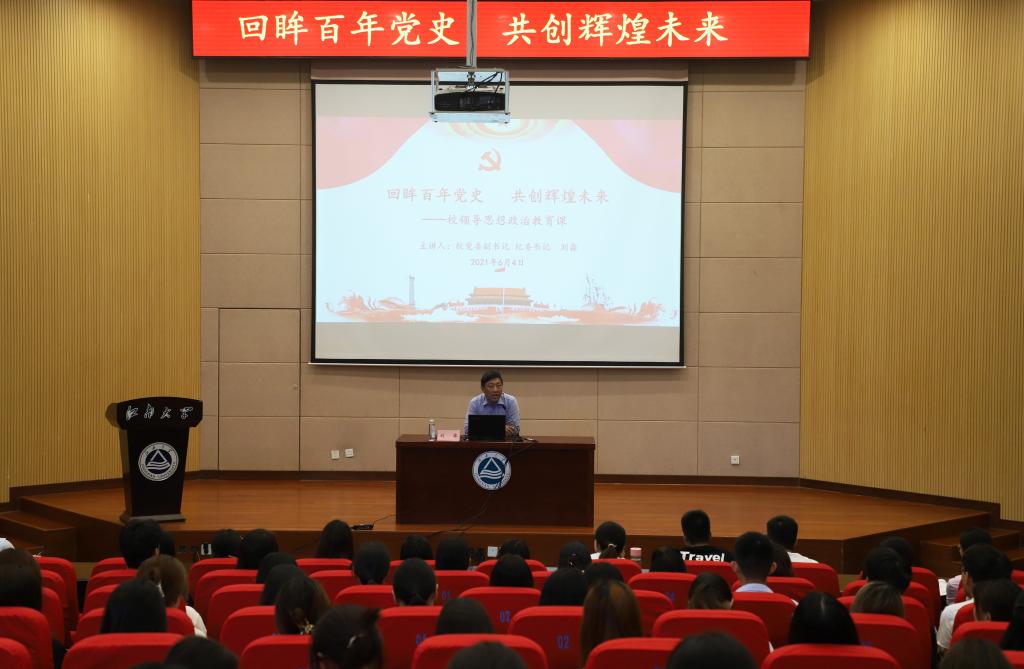 6月4日下午,校党委副书记、纪委书记刘淼为商学院工业工程、国贸专业2020级本科生以及全体预备党员讲授题为《回眸百年党史,共创辉煌未来》的思想政治教育课。商学院党委书记张海峰、副书记兼副院长徐静、专职组织员强心宇、分团委书记林增等参加活动。