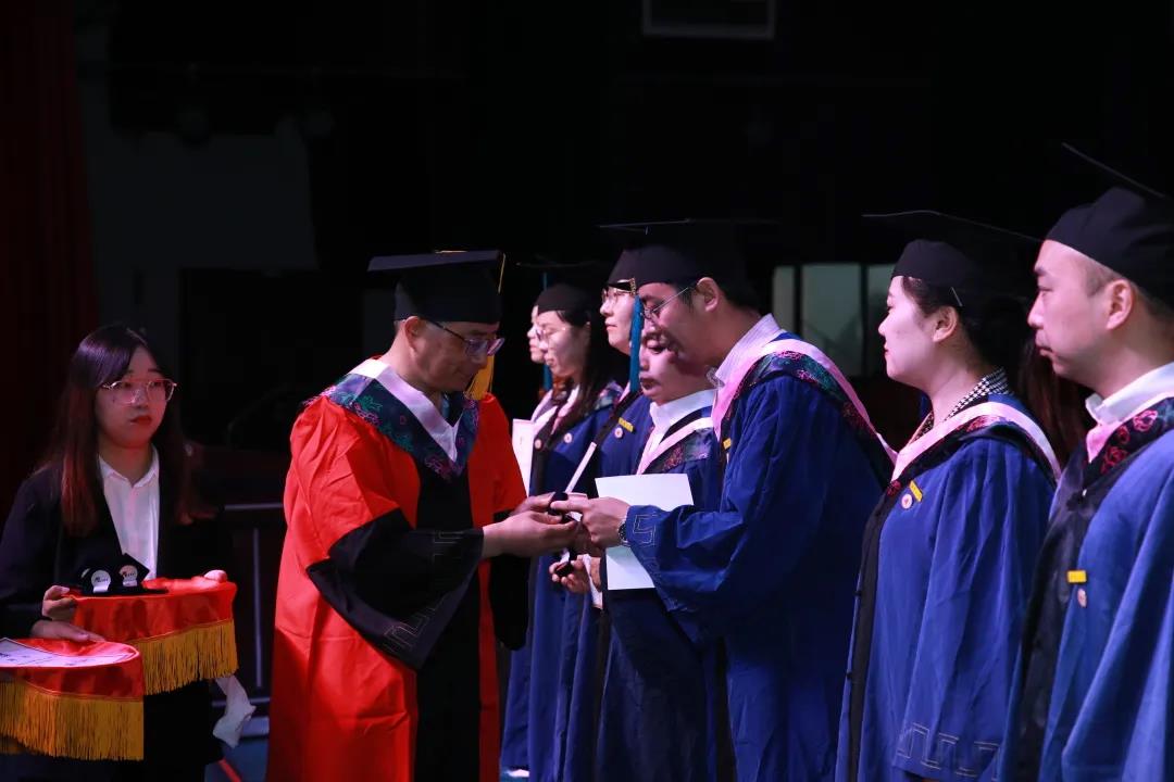 商学院院长、加拿大圭尔夫大学终身正教授滕乐法致毕业辞,向全体毕业生送上最衷心的祝贺与最诚挚的祝福。他希望同学们在未来的日子能够做到从“心”出发,并通过优秀毕业生的事迹阐释了从“心”出发的三点要义。一是学会沟通交流、欣赏理解,正如金融专业427宿舍的邓伟辰、朱旭恒、陆泽楠、王秋爽四位同学,四年来互相欣赏、共同奋斗,成功被浙江大学、华东师范大学等国内知名高校录取,是博采众长、团结互助促使他们书写了学霸宿舍的新传奇。二是坚守本性、终身学习,正如工商管理硕士毕业生刘天娇、谢辰欣两位同学,一直以来坚持做真学问、真做学问,以共同一作的身份,在SSCI一区、ABS三星,影响因子为4.874的国际期刊Journal of Business Research上发表两篇高水平学术论文;管理科学与工程硕士研究生吴栋栋,即将升入南开大学攻读博士学位,在学术道路上孜孜不倦、深入探索,是坚守进取、保有好奇驱使着他们不断探索前行。三是不忘初心,笃定坚持,正如国贸专业本科生陶思樵,考研前一周住进ICU,在病床上完成了最后几日复习,并坚持带病走上考场,最终被清华大学录取;工商管理专业本科生麦尔旦·图尼亚孜,克服生活中的诸多困难,最终考入新疆出入境边防总站,是坚守初心、执着笃定鞭策着他们将痛苦化作成长勋章。滕乐法激情昂扬的致辞赢得了在场师生的阵阵掌声。