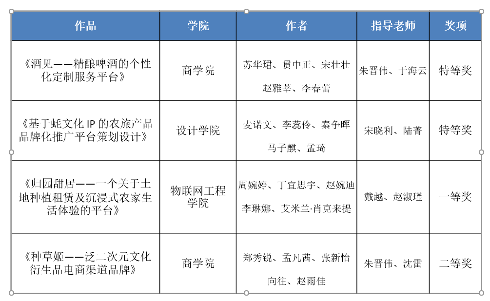 全国大学生电子商务“创新、创意及创业”挑战赛(简称“三创赛”)属于A类二级学科竞赛,是由中华人民共和国教育部主管,教育部高等学校电子商务类专业教学指导委员会主办,竞赛分为校赛、省赛和全国总决赛三级赛事,是激发大学生兴趣与潜能,培养大学生创新意识、创意思维、创业能力以及团队协同实战精神的学科性竞赛。从2009年至今,“三创赛”已经成功举办十一届,参赛队伍、覆盖规模逐年壮大,影响力逐年提升。该赛事在组织筹备选拔阶段得到了我校的高度重视和大力支持,由江南大学学生工作部(处)主办、商学院承办的“三创赛”校级选拔赛,经前期线上线下的动员宣传,各学院积极响应,最终有55支团队共387人注册参赛,经校赛初赛和决赛答辩展示,共选拔来自商学院、物联网工程学院、设计学院、人文学院四个学院共计5支队伍进入省级选拔赛。