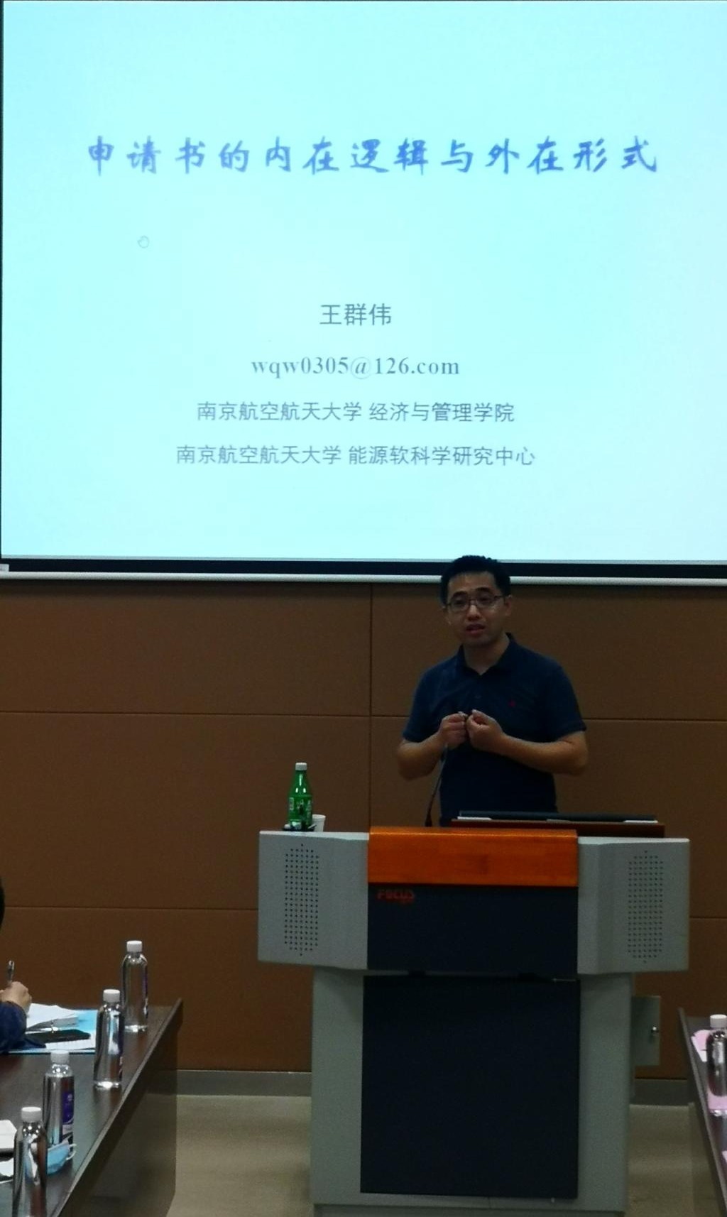 9月22日下午,“商学大讲堂”第162讲在商学院116报告厅举行。南京航空航天大学经济与管理学院王群伟教授应邀作题为“申请书的内在逻辑与外在形式”的报告。钱吴永副院长主持了本次报告会,商学院、法学院、人文学院等部分教师参加了本次讲座。