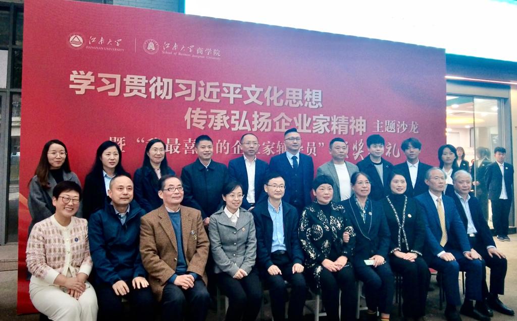 11月10日下午,江南大学商学院“学习贯彻习近平文化思想 传承弘扬企业家精神”主题沙龙暨“我最喜爱的企业家辅导员”颁奖典礼在江南大学学生“一站式社区”举行,企业家辅导员主席团主席周东佼、商学院教授代表朱晋伟、商学院副院长刘勇,企业家辅导员主席团代表、“ 我最喜爱的企业家辅导员”获奖代表、企业家辅导员代表、商学院师生代表等30余人出席活动。主题沙龙由商学院党委副书记兼副院长徐静主持。