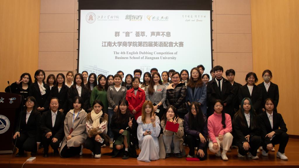 以声为线连广宇,向有音出觅长空。为丰富学生校园文化生活,激发学生英语学习热情,彰显语言文化魅力,展现青年学生个性,营造浓郁的国际交流氛围,近日,“群‘音’荟萃,声声不息”——江南大学商学院第四届英语配音大赛决赛在远东报告厅正式拉开帷幕。商学院党委副书记兼副院长徐静、学工办主任兼分团委书记王璁、辅导员田雨、吴松老师出席本次活动,无锡新东方前途出国刘铭雅、庄新月、雷莹、范思琪等老师担任决赛评委。