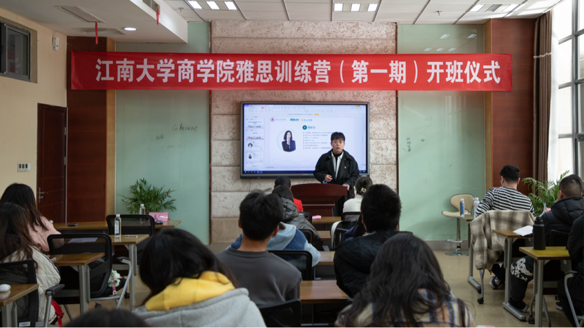 为提高商学院学生英语学习动能,开阔学生国际化视野,提升学生海外升学率,营造浓厚的国际交流氛围,12月6日下午,江南大学商学院雅思训练营(第一期)开班仪式在商学院113会议室举行。院党委副书记兼副院长徐静、新东方前途出国有限公司刘铭雅、雅思专职教师刘栋、阴彩仙和商学院二十余名学生参加开班仪式。开班仪式由学院负责国际交流工作辅导员吴松老师主持。