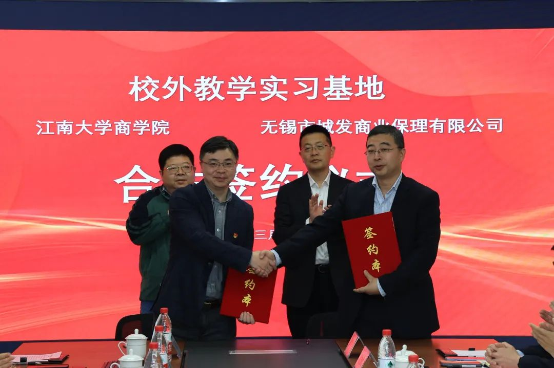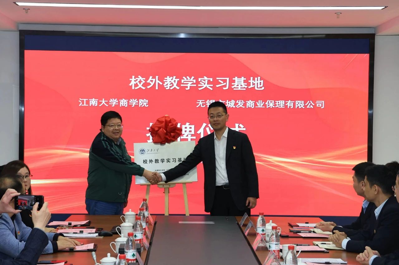 签约仪式上,江南大学商学院经济学科教工党支部书记周五七与城发商业保理公司党支部书记蒋秋明,江南大学商学院副院长王雷与城发商业保理公司董事长朱江在双方领导的见证下分别签署《党建共建协议》和《校外教学实习基地协议书》,明确党建合作原则与目标,打通人才培养与输送渠道,以期实现合作双方共促共进。双方领导共同为校外教学实习基地揭牌。