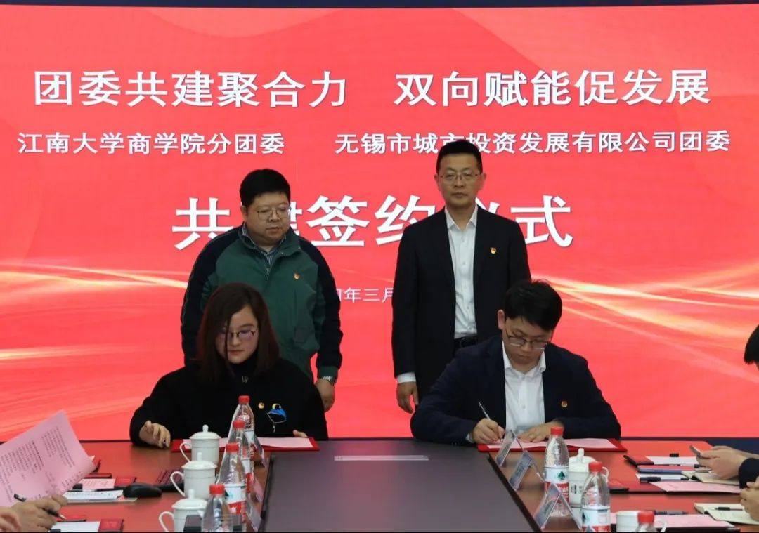 会上同时进行了城投公司团委与江南大学商学院分团委共建签约。市城建发展集团团委书记陆庭翰代表城投公司团委与江南大学商学院分团委书记王璁共同签署《共建大学生教育实践基地协议书》,将以运河艺术公园、梁溪河十里画廊为载体,开展青年志愿服务、历史文化宣讲、研学交流体验等系列活动,用青年力量服务新时代文明实践,为现代化人文宜居城市建设添砖加瓦。