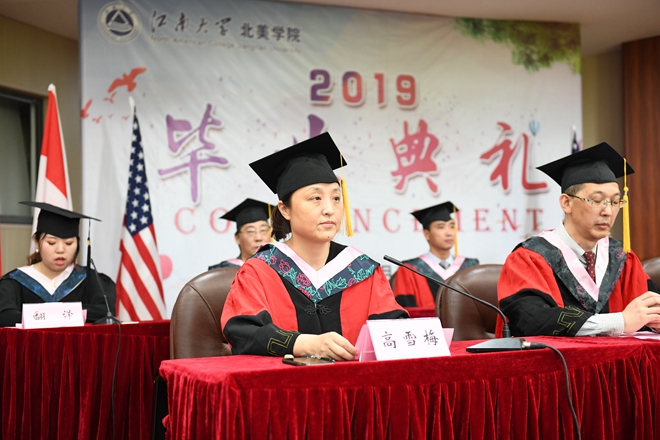 5月24日上午,北美学院本科毕业生、学院党政领导、外方合作学校领导、中外教师代表、毕业生家长代表、在校生代表等500余人齐聚江南大学北区大学生活动中心音乐厅,参加北美学院2019届毕业典礼暨学士学位授予仪式。典礼仪式由院党委书记高雪梅主持。