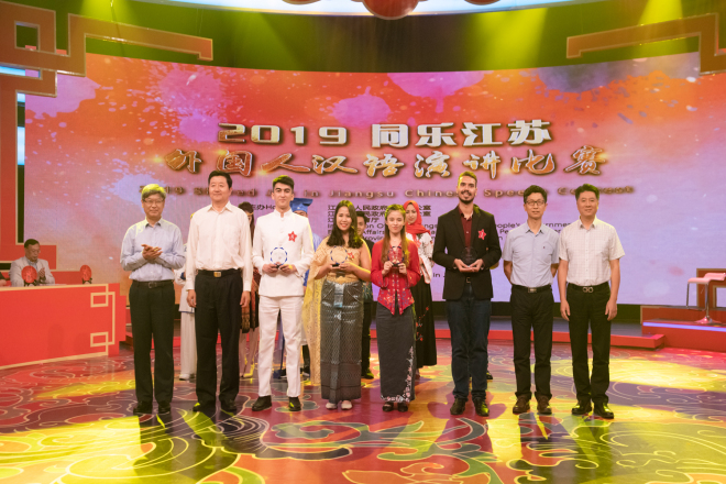 6月15日下午,2019“同乐江苏”外国人汉语演讲比赛总决赛在江苏省广播电视总台举行。来自泰国、马来西亚、哈萨克斯坦、埃及等11个国家的12名选手从数百名海选者和46名晋级赛选手中脱颖而出,同台竞技。