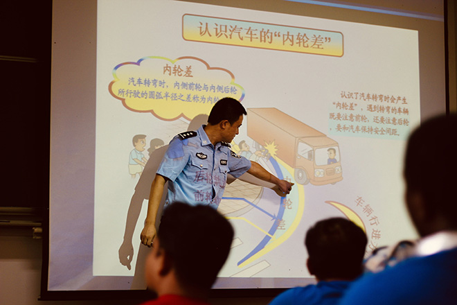讲座伊始,国际教育学院向每位留学生发放并签署了《2019暑假告知书》,针对留学生进行了假期安全提醒和相关纪律的重申。随后,学校还特邀滨湖交警五中队指导员朱晓新警官开展了一场主题为“文明礼让,安全出行”的交通安全学习讲座。朱晓新警官通过交规专业讲解、播放交通事故视频、提问互动等方式,让留学生对无锡市内的交通安全形势、交通事故多发的原因、电动车违法行为和酒后驾驶的危害等问题有了更直观的认知。