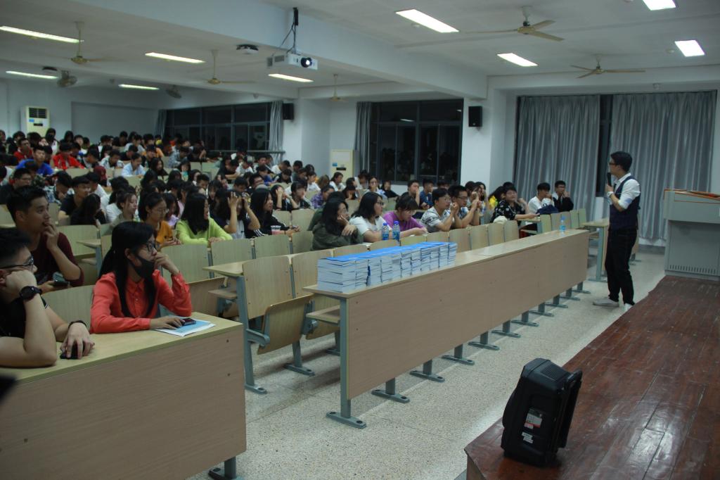 为帮助新生确立大学目标,明确学习方向,完善个人规划,进一步提高个人素养,尽快完成身份转型,北美学院2019年9月23日在二教2D206举行了以“扬帆起航,打开通往世界的大门”为主题的新生转型教育主题讲座。本次讲座主讲嘉宾为无锡新航道教学总监傅泽钇老师,2019级全体新生参加了讲座。