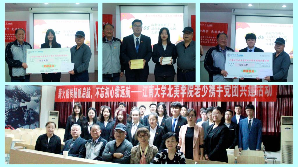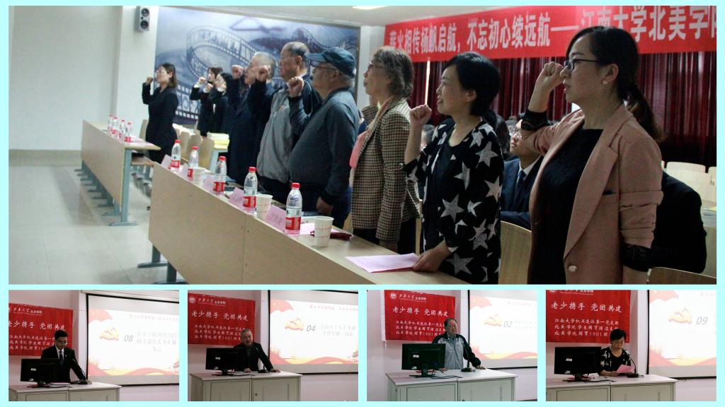 首先,离退休处机关第一党支部书记蒋仲华老师介绍了离退休处机关一支部的整体情况,蒋老师说他们这些老同志平均年龄70多岁,但是仍然战斗在关心关爱教育服务学生的第一线,他们愿意用自己的一腔热血为祖国和党的事业继续奋斗。离退休处机关一支部支委袁伯兴老师前段时间刚做完手术,依然很热情的帮助做筹划和准备工作,他说他希望能将自己对党的理解全部告诉青年朋友们,给青年朋友们明确未来的目标和方向;关工委委员吴骥一老师代表学校关工委感谢学院党委对关工委工作的重视,同时也肯定了近年来北美学院在学生培养和教育上取得的一些进步,他希望我们中外合作办学要培养热爱祖国,热爱党,热爱人民,热爱学校和热爱学院的有情怀的有志青年。