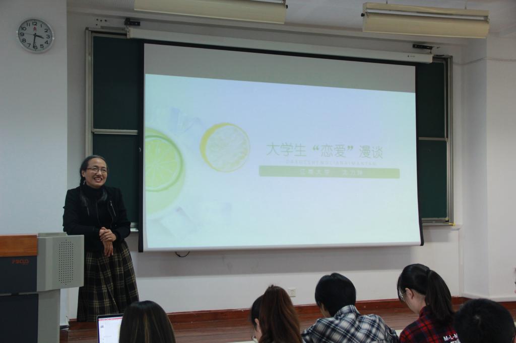 为了加强学生心理保健意识,提升心理素质,2019年11月5日下午,北美学院心理健康中心于二教2D306开展了一场主题为“大学生恋爱漫谈”的心理讲座。主讲嘉宾为国家二级心理咨询师、校医院副主任医师沈力晔,2018级及2019级部分学生参加了本次讲座。院心理健康中心指导老师赵彤主持了讲座。