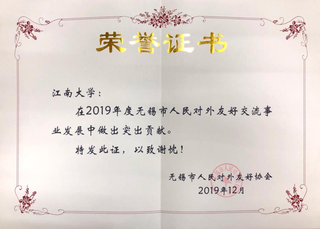 晚会伊始,无锡市副市长刘霞致新年贺辞,她表示无锡2019年的发展成果离不开国际友人的支持与贡献,祝愿大家新的一年工作顺利、生活幸福。随后,大家欣赏了由无锡市文化发展集团、韩国商会、日商俱乐部等多家单位带来的精彩节目,其中我校国际学子表演的舞蹈串烧将现场气氛推向高潮,赢得热烈的掌声与喝彩。我校还与有关单位一起,获颁“2019年度无锡市人民对外友好交流事业突出贡献奖”。