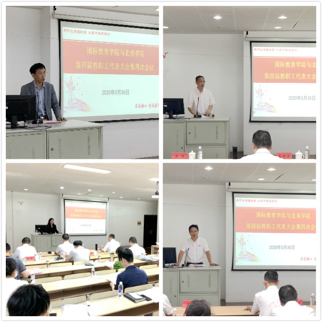 5月30日,在全国上下深入学习贯彻两会精神之际,国际教育学院与北美学院召开第四届教职工代表大会第四次会议。出席教代会的正式代表32人,校工会副主席刘玉敏应邀出席,大会由院工会主席朱琳主持。