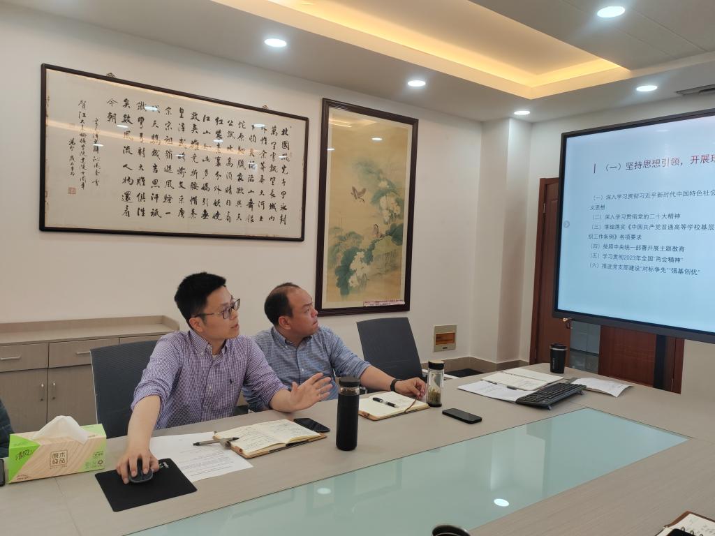 会上,专职组织员杨艳详细解读了《江南大学2023年上半年基层党支部组织生活指导意见》,并提醒相关工作要求;王胤围绕宣传和网络安全开展教育,就近期新闻宣传工作的热点和重点做了梳理提示;周伟根据纪检工作要求布置了近期相关工作;各支部书记就上半年支部工作计划、特色亮点分别进行了汇报交流。