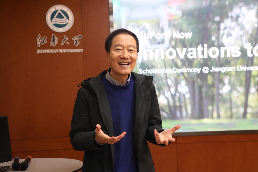 高志江先生首先代表公司致辞,他阐述了江南大学生物工程学院与杜邦的渊源以及校友对杜邦的积极贡献,肯定了学院的人才培养质量。紧接着他介绍了杜邦公司的发展历史、业务范围、价值理念以及未来发展方向,杜邦公司是一家拥有两百多年悠久历史的世界五百强企业,通过包容性创新寻找科学方案,以解决世界上一些最为严峻的挑战。如今杜邦公司的业务遍及全球90多个国家和地区,以广泛的创新产品和服务涉及农业与食品、楼宇与建筑、通讯和交通、能源与生物应用科技等众多领域。最后他表示,希望继续推进校企合作,开展深入交流,也希望同学们加强专业学习、提高实践能力,积极推动行业发展。