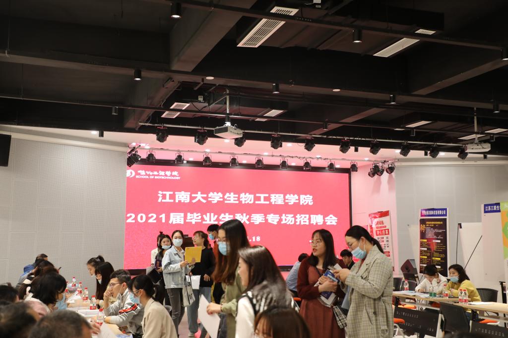 为贯彻落实党中央、国务院关于“稳就业”“保就业”工作的重要决策部署,更好地为用人单位与学生提供互相了解的机会,促进毕业生更充分更高质量就业。2020年11月18日下午,生物工程学院于北区大学生活动中心举行2021届毕业生秋季专场招聘会。在做好常态化疫情防控工作情况下,经学院审查筛选,共有31家单位参会,提供800余个就业岗位,吸引近300名学生参与。