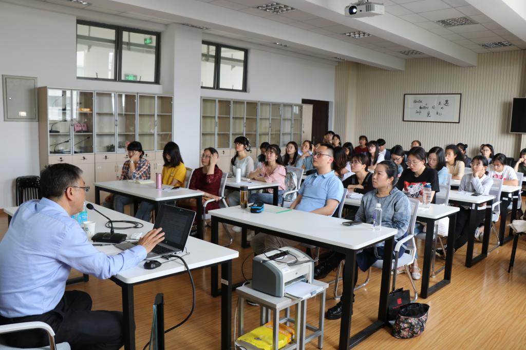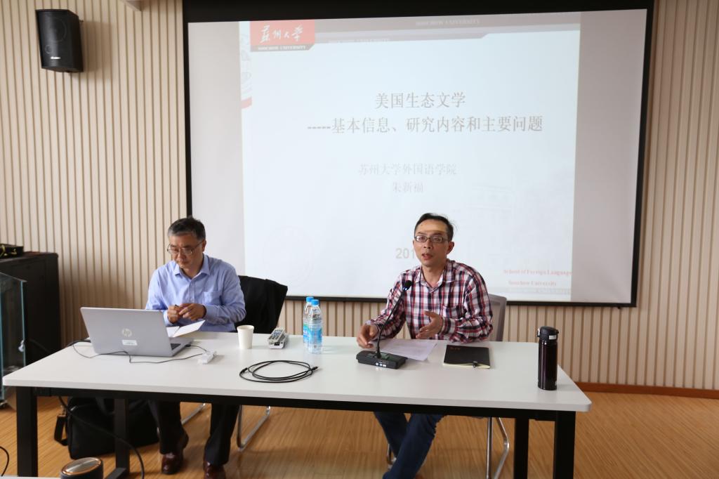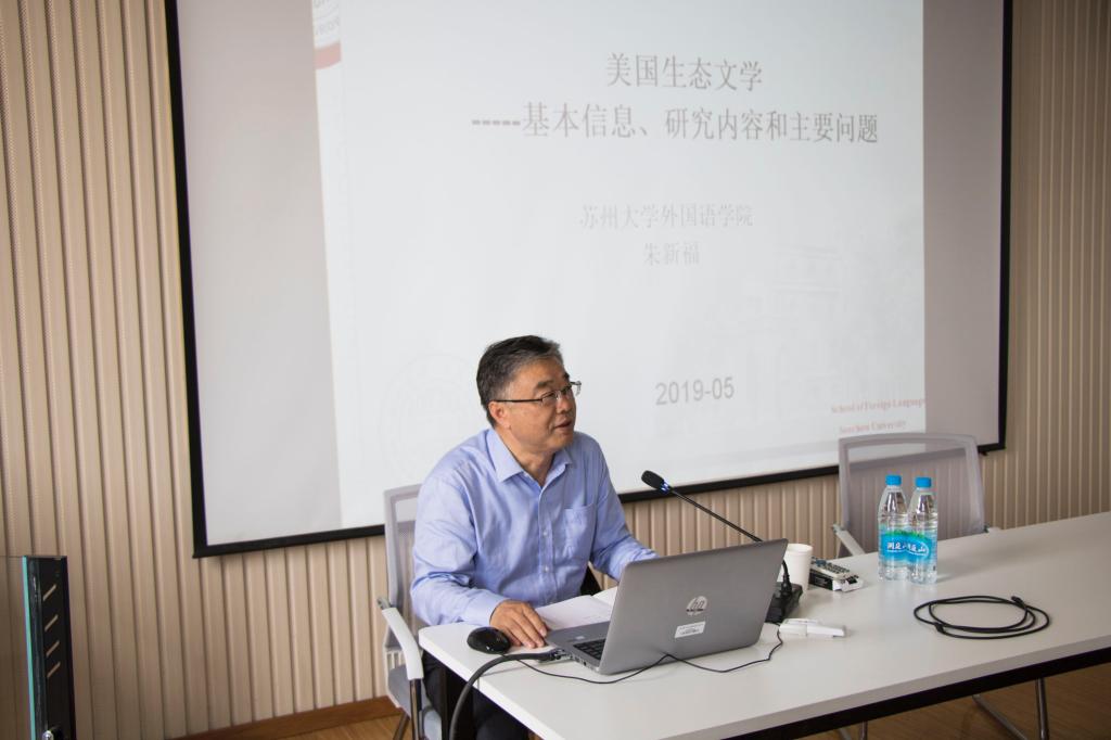5月17日下午两点,2019外语学科系列讲座第五期暨“遇见更好的自己”名师沙龙活动在外国语学院A529准时召开。本次活动由江南大学外国语学院副院长方文开主持,由苏州大学外国语学院院长朱新福教授主讲。出席本次沙龙活动的还有学院党委副书记刘伯贤、多位专业课老师及学院本科生和研究生。本次沙龙活动的主题是:美国生态文学的基本信息、研究问题和主要问题。