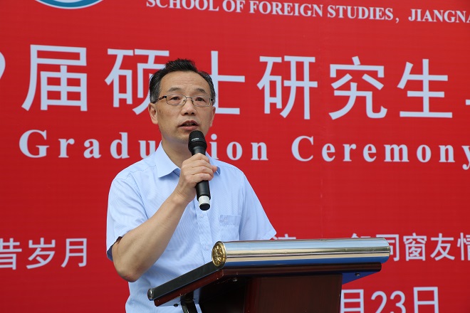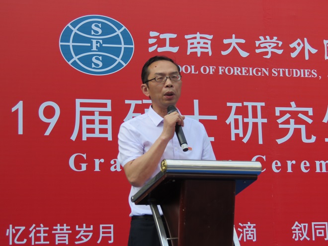 三年前,带着憧憬,相遇于此;三年后,满怀希望,蓄势待发。值此依依惜别之毕业季,以“忆往昔岁月 铭师恩点滴 叙同窗友情 扬人生风帆”为主题的外国语学院2019届硕士研究生毕业典礼于6月23日下午在外国语学院楼前广场隆重举行,33名研究生完成了在江南大学的最后一课,为他们人生中最难忘的一段时光划上了完美的句号。