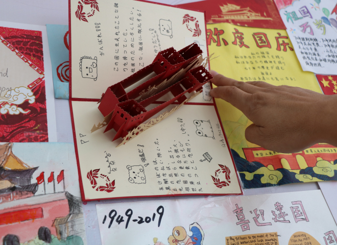 为隆重庆祝中华人民共和国成立70周年,大力弘扬以爱国主义为核心的伟大民族精神,深切感悟新中国70年风雨历程和伟大成就,进一步激发青年学生爱国之情,强化爱国之志,实践报国之行,外国语学院在研究生、本科生各个班级中组织开展了国庆歌咏比赛、寄语祖国手卡制作、微视频作品等“青春告白祖国”系列活动。