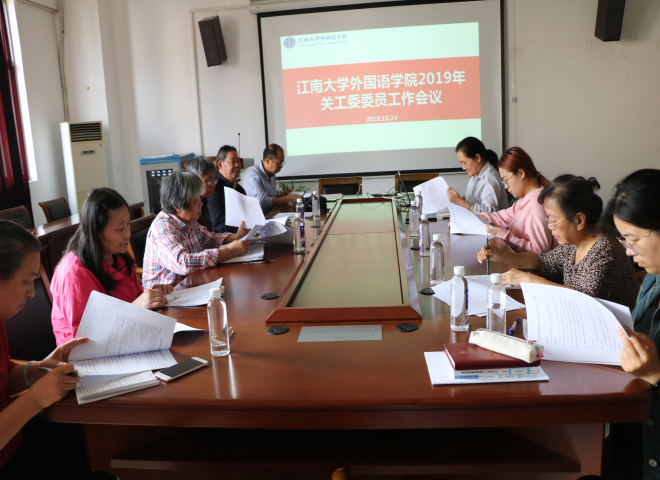 2019年10月24日下午,江南大学外国语学院关工委委员工作会议在学院A349召开,全体关工委委员参加会议。