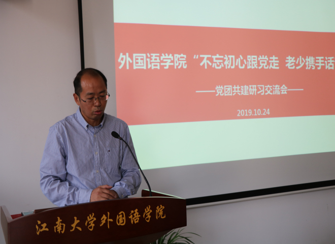 为扎实开展“不忘初心、牢记使命”主题教育,推进党建带团建工作,激励青年学生坚守初心、砥砺奋进,10月24日下午,外国语学院在学院A349会议室开展了“不忘初心跟党走,老少携手话青春”党团共建研习交流会。本次交流会邀请了机关退休第四党支部、社桥退休党支部老党员同志参加。外国语学院党委副书记、副院长刘伯贤,学院分团委书记杨艳以及雷锋团支部、张闻天团支部全体成员出席会议。会议由刘伯贤老师主持。