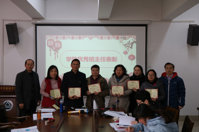 为总结外国语学院2019年学生工作的经验,进一步加强班主任队伍建设,提高班主任管理水平,增强班级工作经验交流,2020年1月8日下午,外国语学院在A349召开了2019年班主任总结会暨学风建设推进会。学院全体班主任老师参加会议,院党委书记黄城芳、党委副书记刘伯贤出席会议。会议由分团委书记杨艳主持。