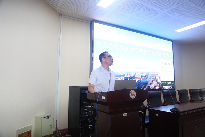 在校工会的指导和关心下,2020年6月3日,外国语学院召开第六届教职工代表大会第二次会议,讨论通过学院关于绩效工资实施、2020-2022聘期岗位聘任条件等文件。41名代表出席了会议。